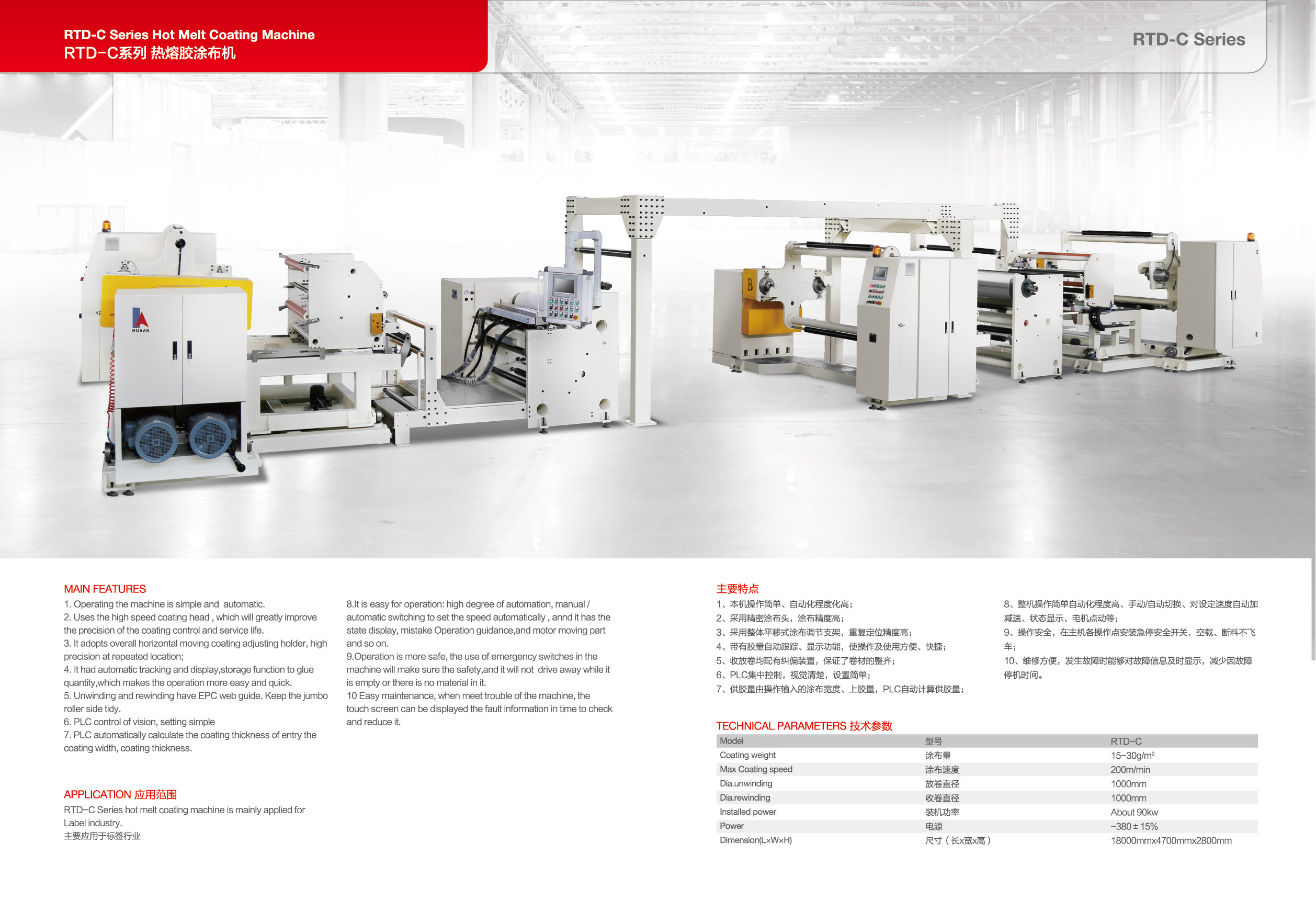 多年來,華安機(jī)械為熱熔膠涂布、復(fù)合領(lǐng)域提供了品種繁多的設(shè)備,產(chǎn)品廣泛應(yīng)用于膠粘制品、防水、標(biāo)簽、汽車內(nèi)飾、醫(yī)用敷料、一次性婦幼用品、紙箱包裝、廣告耗材、鞋材、濾清器、熱熔膠膜、無紡布、化妝品填充、家具粘合、車燈粘合、電子、軟包裝、功能性服裝復(fù)合面料等多種行業(yè)。已經(jīng)成功推出了RT系列、RT-B系列、RJT系列、RT-C系列等涂布機(jī);新世紀(jì)2000A系列、H088、H288、H388系列噴膠機(jī);PUR系列吸盤式熱熔膠機(jī);RF系列復(fù)合機(jī)......